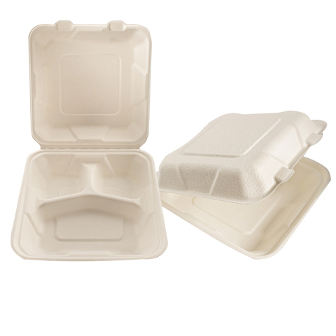 Milieuvriendelijke 8 Inch Scharnierende Clamshell Maaltijd Containers Te Gaan 100% Biologisch Afbreekbaar Suikerriet Bio Hamburger Doos